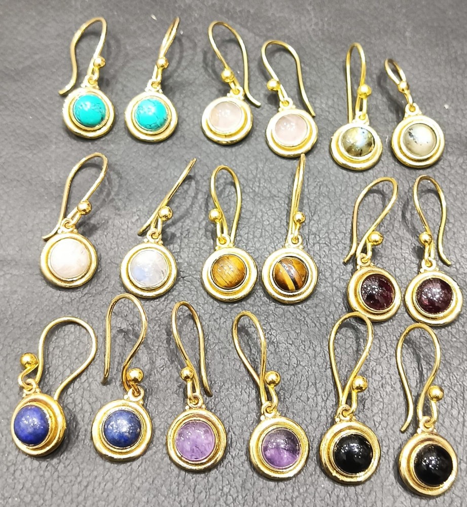6pcs pack of brass stone earrings