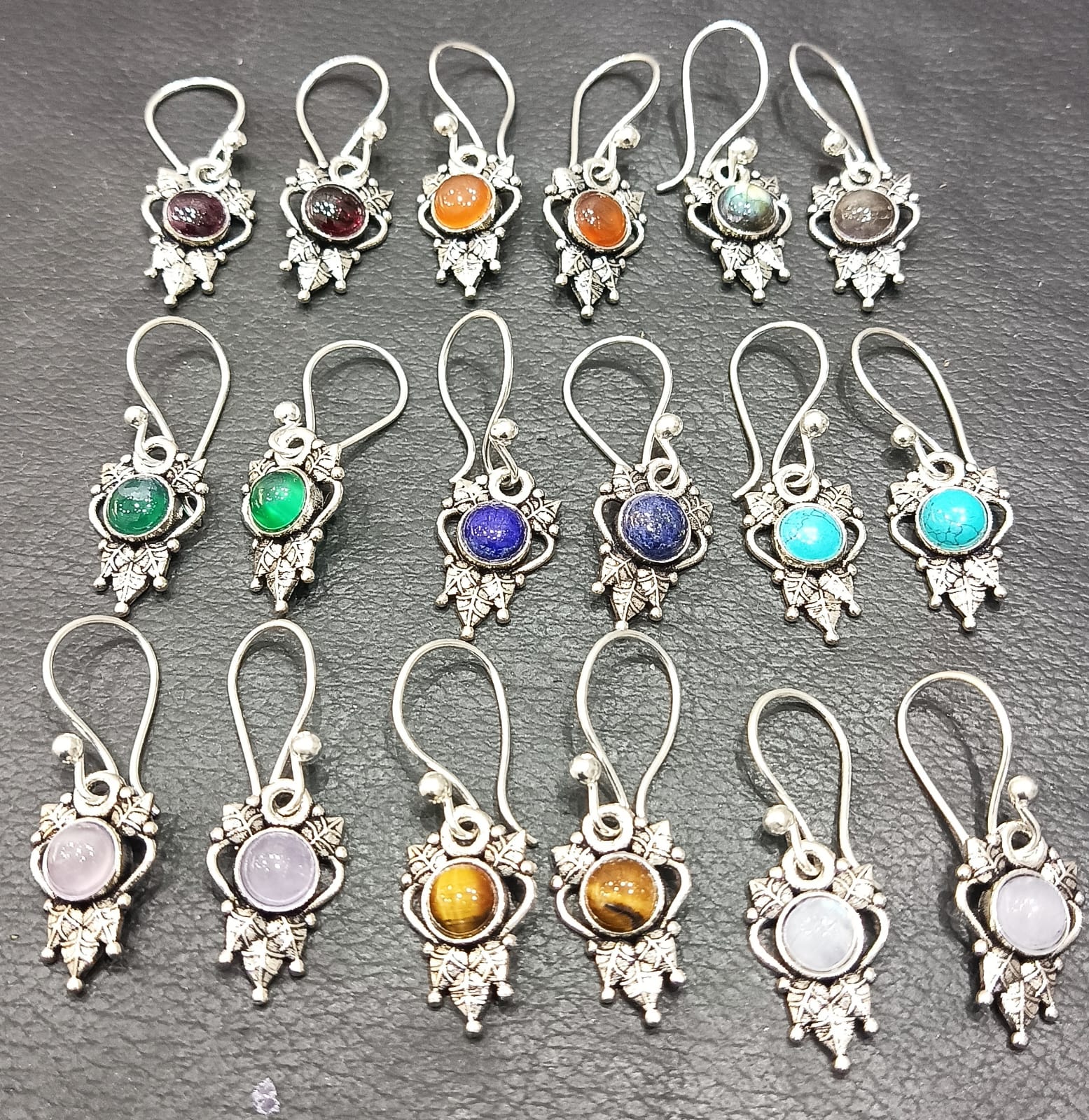6pcs pack of brass stone earrings
