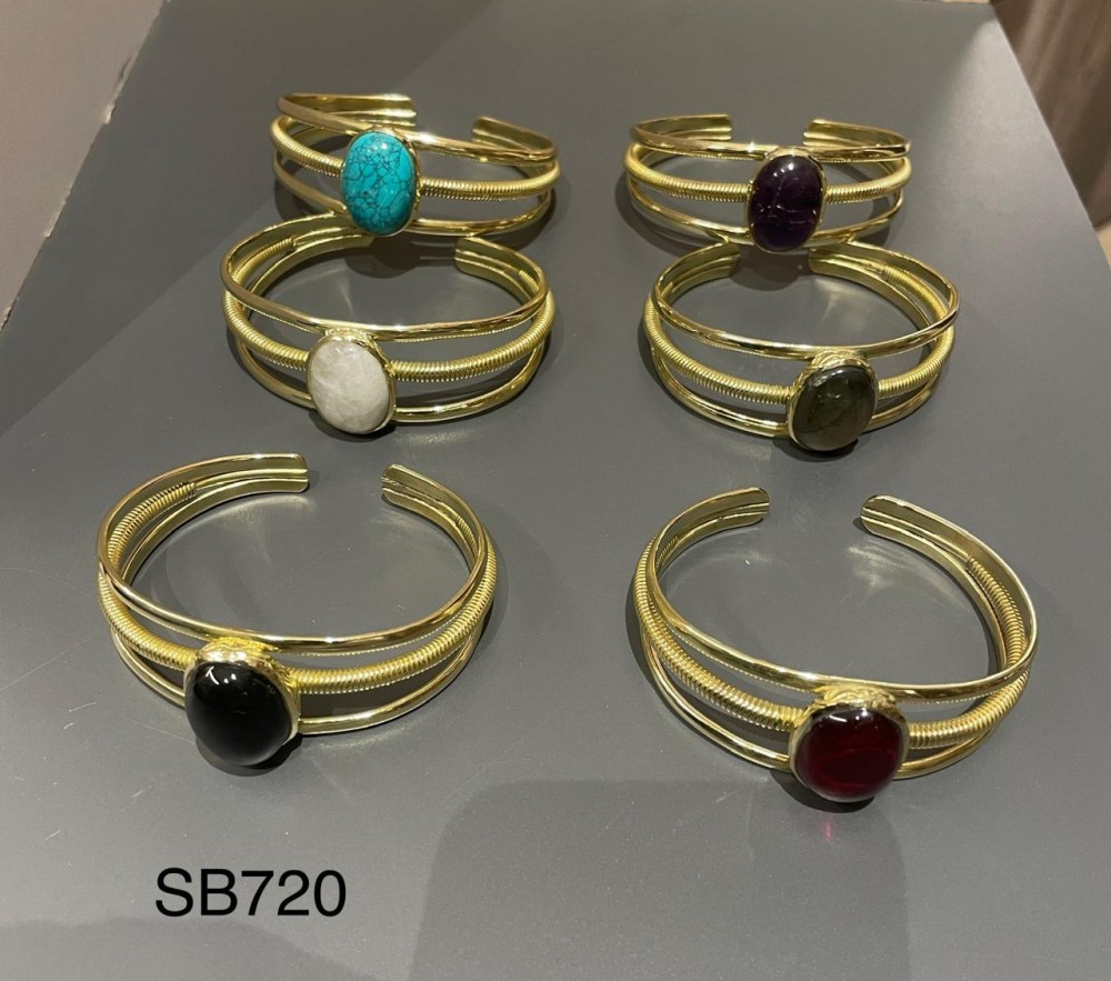 6pcs pack of ladies boho stone brass bangles
