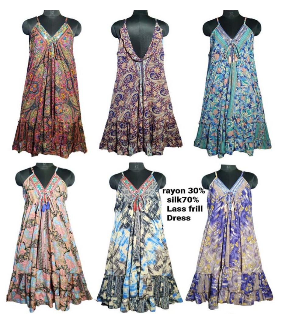 6pcs pack of silky printed boho beach dress