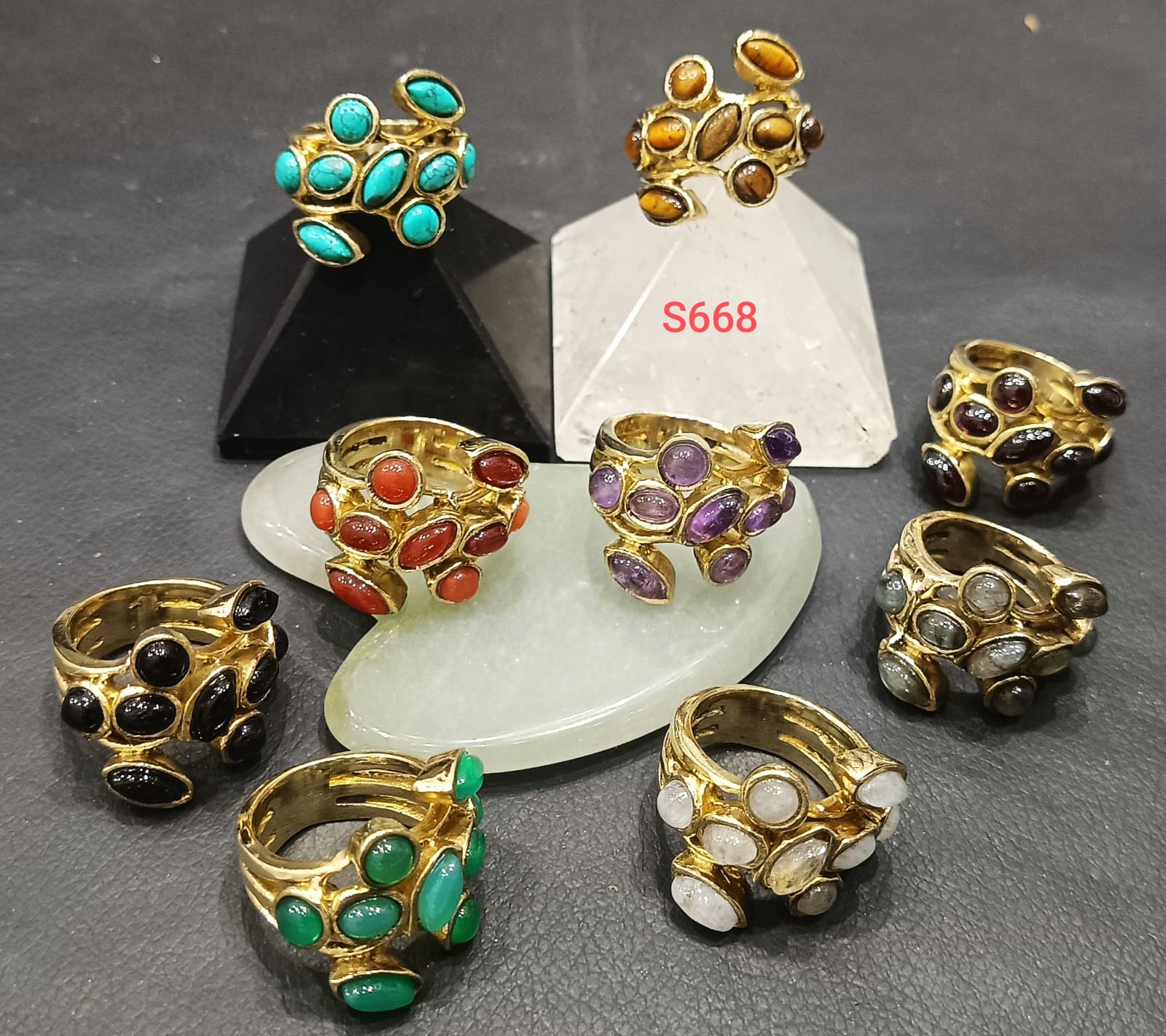 Statement Gemstone Ring Collection – Designer Brass Rings