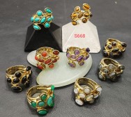6pcs pack of Statement boho brass stone rings Rg-779865w