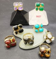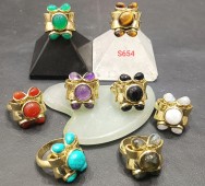 6pcs pack of Statement boho brass stone rings Rg-779865x